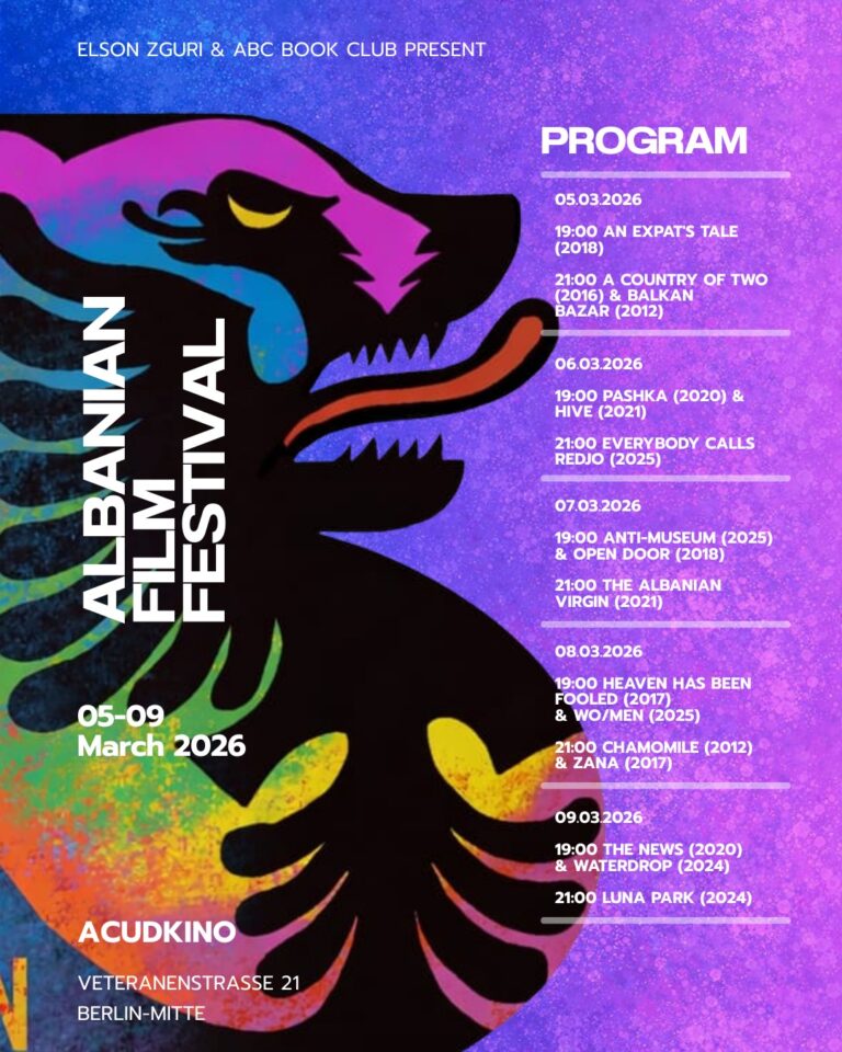 Das Albanische Filmfestival Berlin ist das erste Festival seiner Art in der deutschen Hauptstadt und widmet sich der Präsentation des albanischen Kinos sowie der vielfältigen Stimmen albanischer Filmschaffender aus aller Welt.
